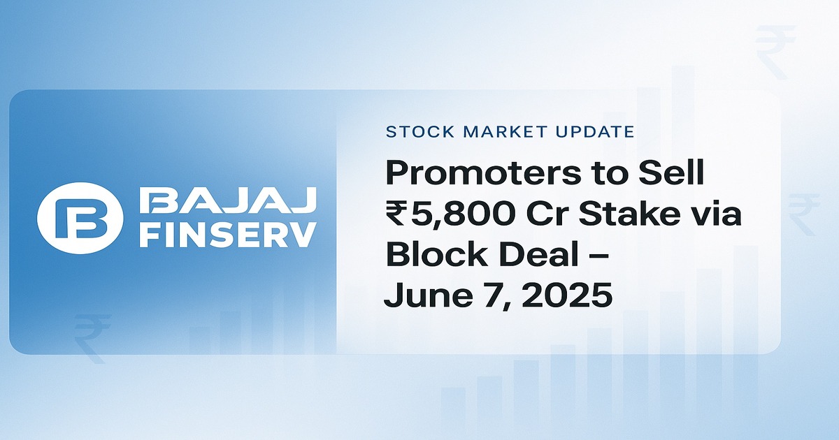 In a significant development from the Indian financial services space, promoter entities of Bajaj Finserv Ltd.—Bajaj Holdings & Investment Ltd. and Jamnalal Sons Pvt. Ltd.—have announced their intention to sell shares worth Rs 5,800 crore through open market transactions on Friday, June 7, 2025. The move is structured as a block deal, a common route for high-volume, institutional share sales.