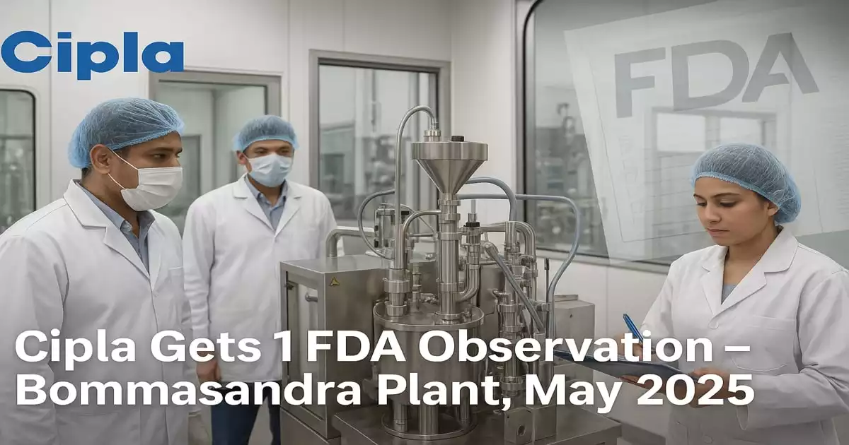 Cipla Ltd, one of India’s top pharmaceutical companies, has received a single observation from the US Food and Drug Administration (US FDA) following an inspection at its Bommasandra manufacturing facility in Bengaluru. The inspection was conducted over five days, from May 26 to May 30, 2025, and concluded with Form 483 containing one observation, which typically indicates a non-critical procedural or documentation issue that requires corrective action.