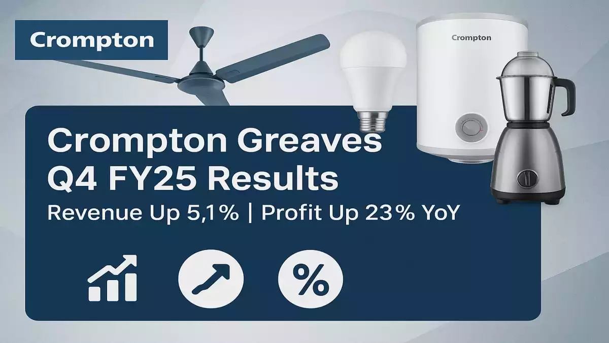 Crompton Greaves Consumer Electricals Ltd. delivered a robust performance in the fourth quarter of FY25, with net profit rising 23% year-on-year (YoY) and revenue growing 5.1% YoY, signaling improving consumer sentiment and operational efficiency across its business segments. Despite ongoing challenges in discretionary spending and inflationary pressures, the company managed to outperform expectations, largely driven by strong demand in the residential electricals category and continued margin resilience.