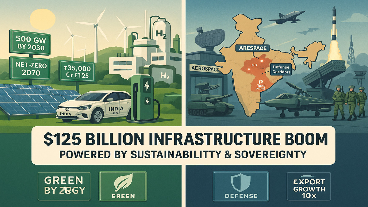 India’s infrastructure story is no longer just about highways and railways — it’s about solar parks, EV corridors, defence corridors, and indigenous manufacturing hubs. In 2025, as the nation’s infrastructure spending crosses a whopping $125 billion, two sectors stand out as big winners: Green Energy and Defence.