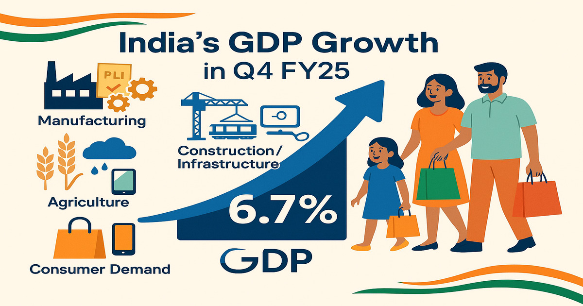 In Q4 of FY25, India’s economy clocked an impressive 6.7% GDP growth, defying global headwinds and domestic uncertainties. At a time when many developed nations are wrestling with slowing growth and inflation worries, India seems to have found its groove — combining steady demand with policy support to keep the growth engine humming.