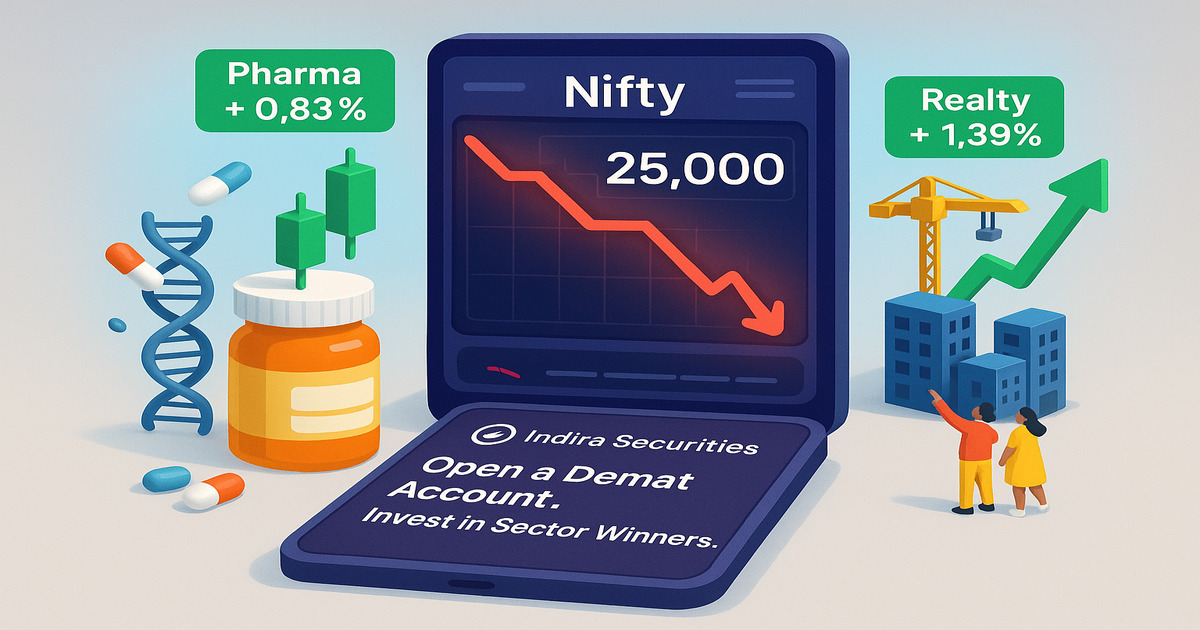 Though Nifty50 slid to 25,000 at the start of the week, two sectors stood out for their resilience: pharma and realty. Let’s explore what propelled their gains today (July 14, 2025), backed by data, and what lies ahead.