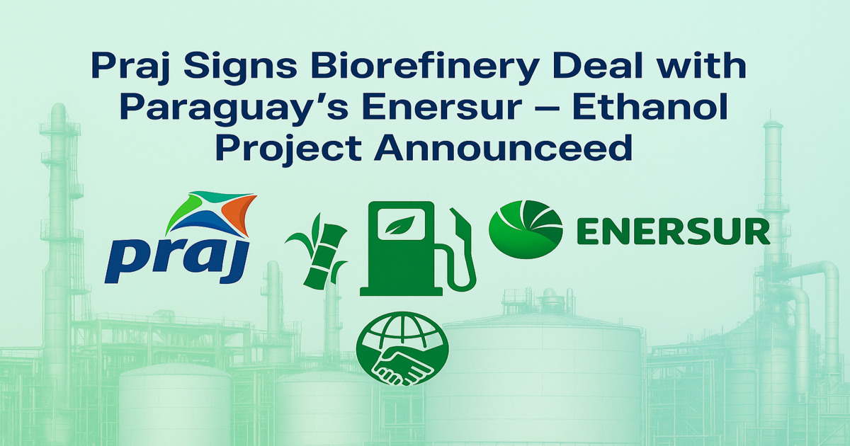 In a notable development on the global clean energy front, Praj Industries, a leading Indian bioenergy and engineering company, has signed an agreement with Enersur SA, a Paraguayan energy company, to set up a large-scale ethanol biorefinery project. This project is aimed at producing bioethanol and co-products, reinforcing Praj’s global leadership in the sustainable fuels and bioeconomy space.