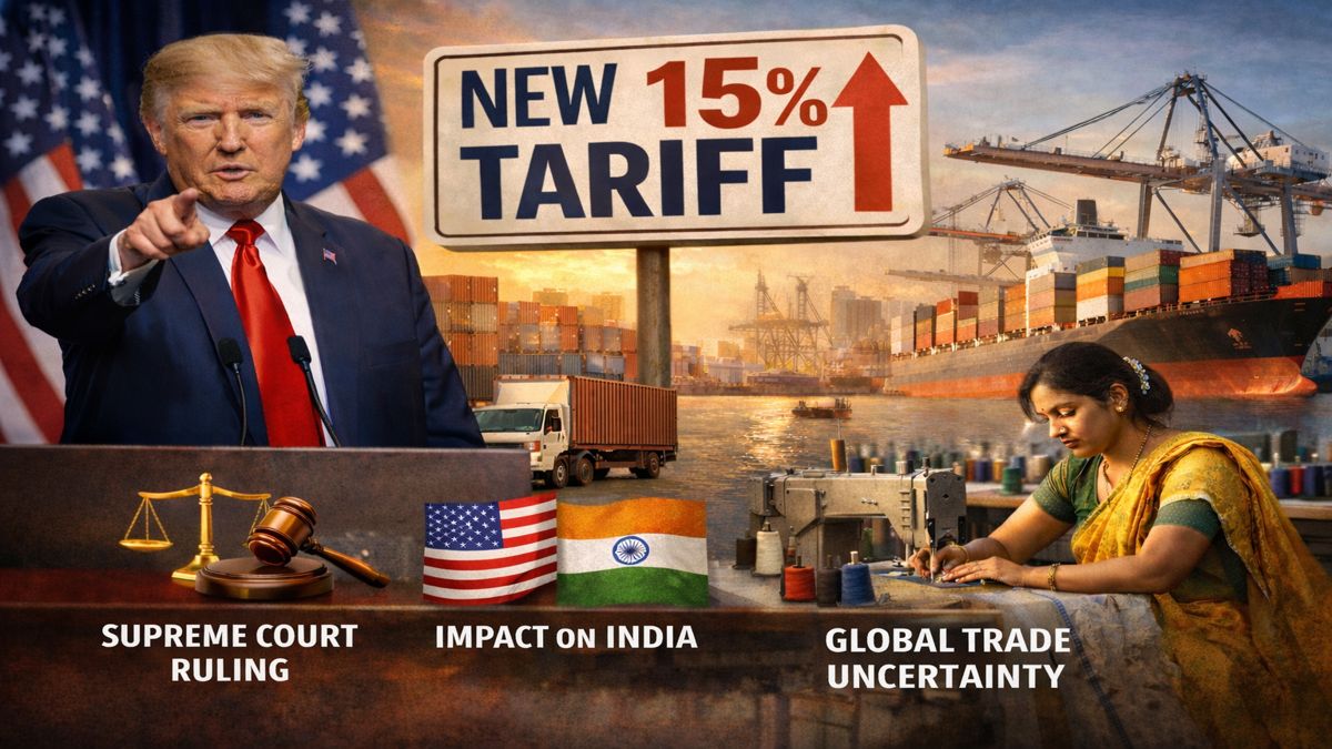 Global trade rarely stays calm for long, and the latest twist has come from the United States. After the U.S. Supreme Court struck down Donald Trump’s sweeping tariff framework, a fresh 15% blanket tariff on imports has now been announced. This sudden shift is not just a U.S domestic policy move, it carries real consequences for global supply chains, trade negotiations, and countries like India that depend heavily on exports to the American market.